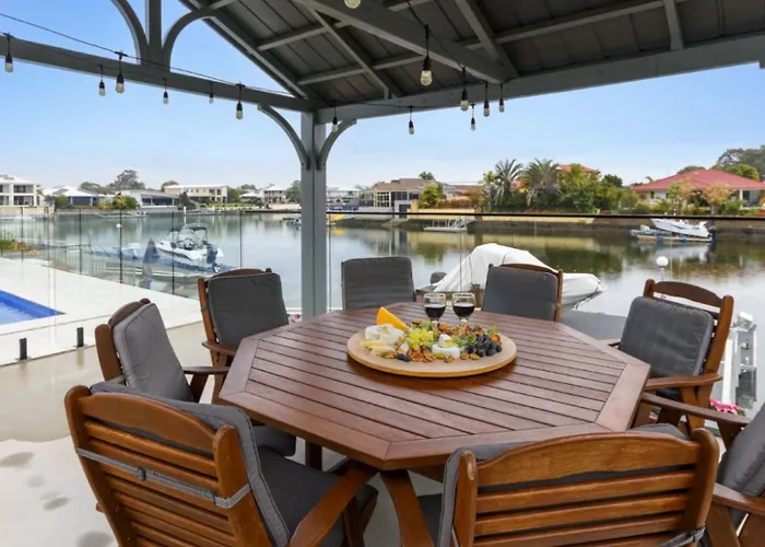 Deze 2-slaapkamer Relax Poolside By The Canal Bongaree villa bevindt zich 2 km verwijderd van het Bribie Island Vlinderhuis en nodigt gasten uit om attracties in de omgeving te verkennen.